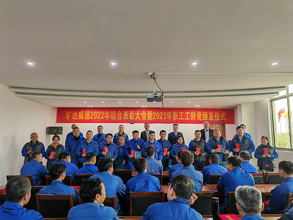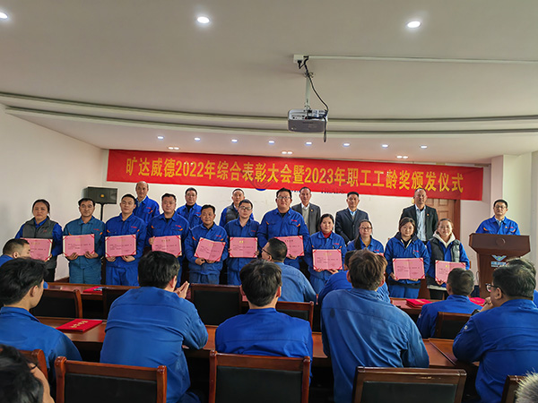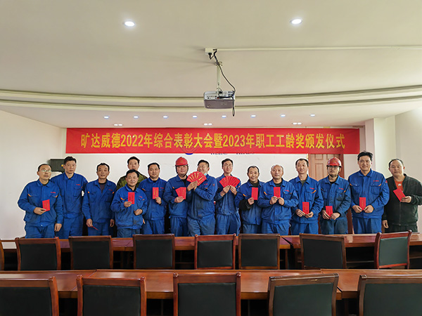 2023年4月7日下午15:30全體員工在行政樓三樓大會議室舉行了曠達威德2022年度綜合表彰大會暨2023年職工工齡獎頒發(fā)儀式。會議由綜合管理部部長陳亮主持。