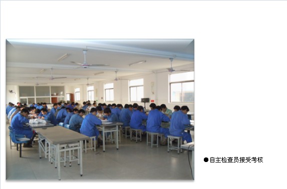為確!巴路忸^”的質量得到穩(wěn)定的控制,由質保部牽頭,組織多位經驗豐富的教員,從去年開始,陸續(xù)對生產一線員工進行了兩輪自主檢查系列培訓。為檢測培訓效果,公司于今年8月底、9月初組織131人分兩批進行了自主檢查員考試?上驳氖牵袇⒖紗T工全部通過了考核:75人(占參考人數的57.2%)的成績達優(yōu)秀級(90分及以上),其中,得滿分100分者有9人(丁傳江、金銀江、付宜選、王小波、蔣云龍、水宏江、吳金劍、趙艷、許君芬); 49人(占參考人數的37.4%)的成績達良好級(75-89分);另有7人(占參考人數的5.3%)的成績達合格級(60-74分)。