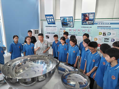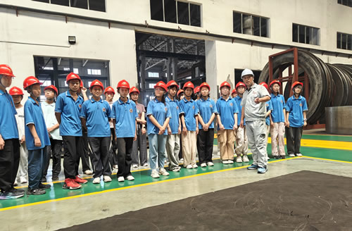 在專業(yè)引導(dǎo)下,學(xué)生們目睹了封頭從厚實(shí)鋼板到精密成型的全過程。自動(dòng)化設(shè)備精準(zhǔn)舞動(dòng),巨型壓機(jī)沉穩(wěn)發(fā)力,火花在嚴(yán)謹(jǐn)控制下飛濺——冰冷的金屬在智慧與技術(shù)的鍛造中煥發(fā)新生。每一步工藝都化為具象的工業(yè)語言,向年輕的眼睛講述著“中國(guó)制造”背后精密如齒輪咬合的分工協(xié)作與流程力量。