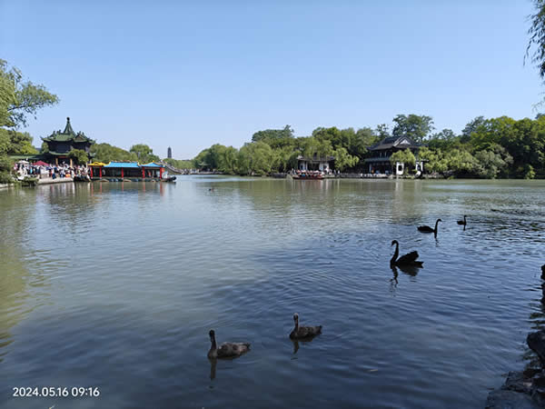中午吃完飯回酒店休整一下,我們便出發(fā)去了東關(guān)街,這里有很多小吃和特產(chǎn)小店,一路走走停停,嘗了揚(yáng)大酸奶,揚(yáng)州老鵝,聽(tīng)了小曲兒,倒也過(guò)癮。     晚上吃完飯后去乘船夜游古運(yùn)河,船上導(dǎo)游一路講解各景點(diǎn)風(fēng)光,五光十色的游船燈光倒映在湖面,吹著晚風(fēng),十分愜意,一天的游玩也結(jié)束啦。     第二天早上在酒店稍微墊饑吃了一點(diǎn)早飯后,我們又去了富春酒樓吃早茶,有各色包子面點(diǎn),因?yàn)樾谐瘫容^匆忙,沒(méi)有好好品味,期待下次再來(lái)細(xì)細(xì)品嘗。然后我們?nèi)ビ瘟耸菸骱,作為全?guó)有名的旅游景點(diǎn),在這里確實(shí)感覺(jué)到很悠閑自在,周圍綠樹(shù)成蔭,沒(méi)有讓人壓抑的高樓大廈。吃完午飯又去了何園,這里原先是一個(gè)私人園林,現(xiàn)在這個(gè)時(shí)節(jié)比較多的是綠樹(shù),早些時(shí)候過(guò)來(lái)應(yīng)該會(huì)看到很多不同的花花草草,想必是另一番意境吧。